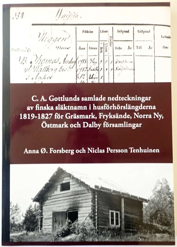 C.A Gottlunds samlade nedtecningar av finska släktnamn i husförhörslängderna 1819-1827 för Gräsmark, Fryksände, Norra Ny, Östmark och Dalby församlingarAnna Ø. Forsberg och Niclas Persson Tenhuinen