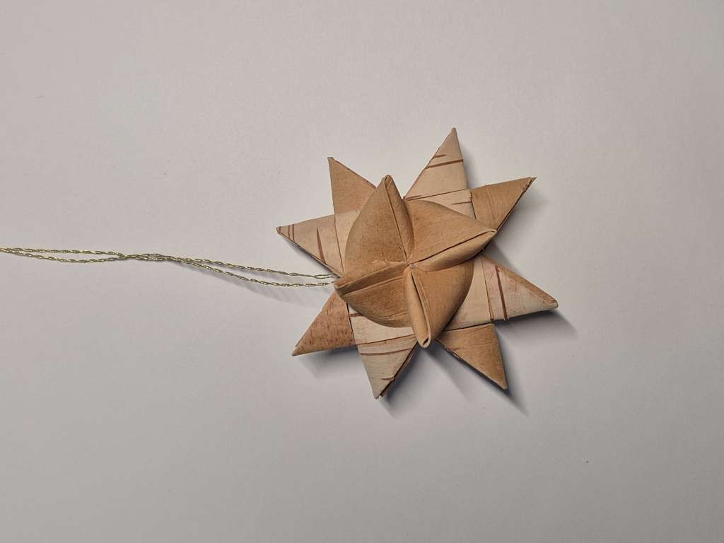 Dobbel stjerne med snor.Håndlaget i never. Diameter 4 cm, 7 cm og 9 cm
