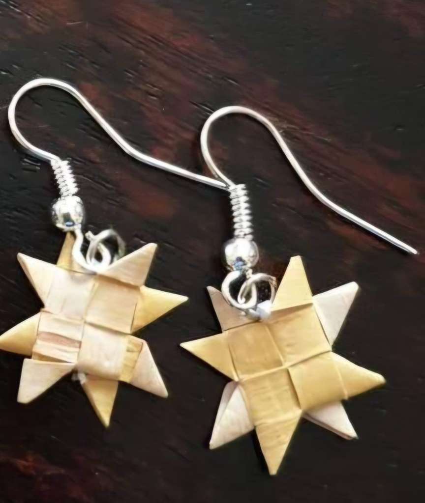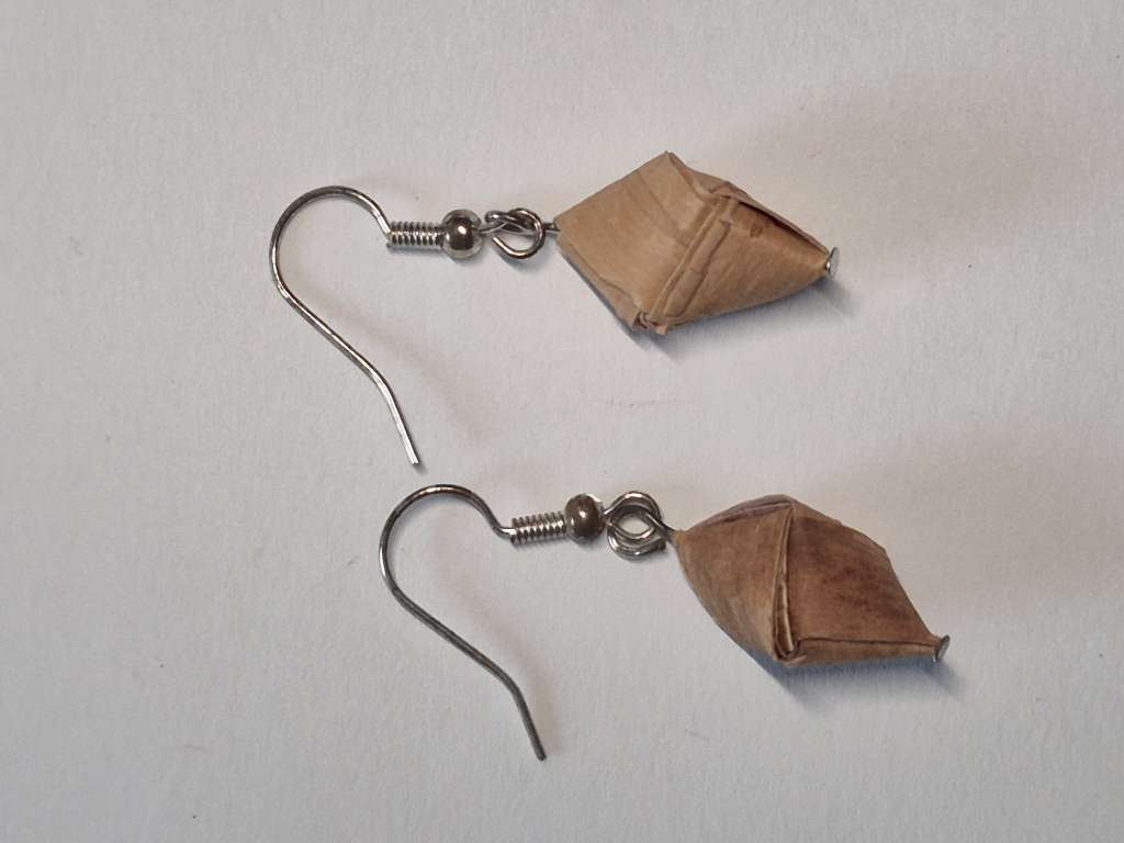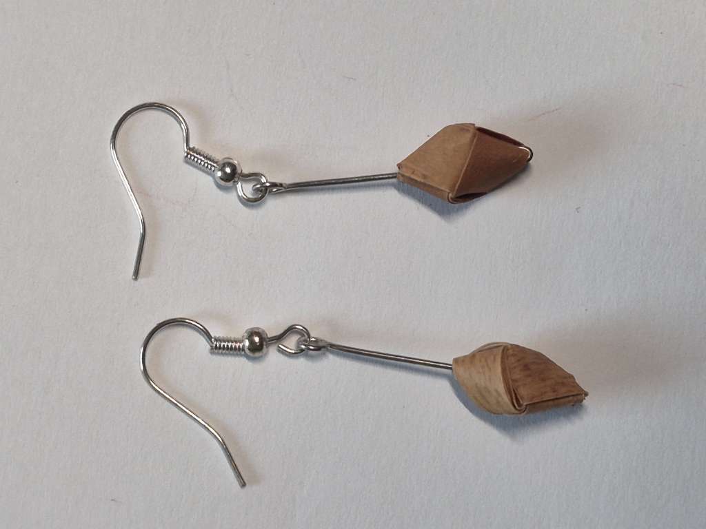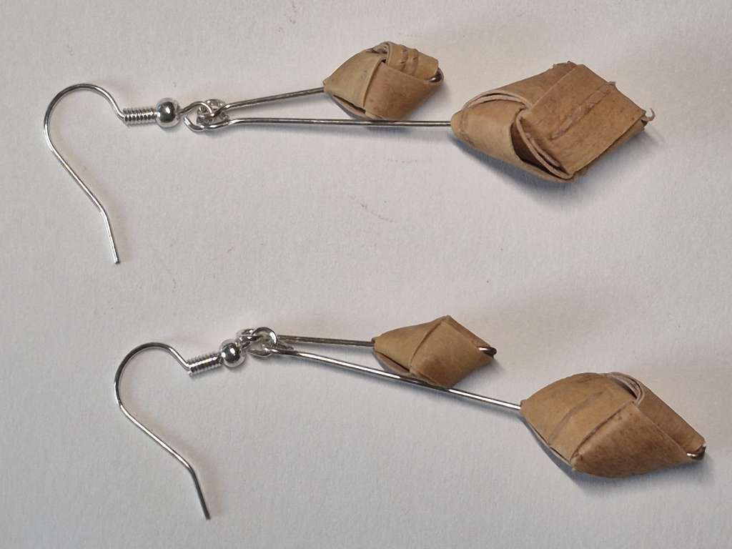 Øredobber i never, håndlaget i never. Ørekrok i sølv