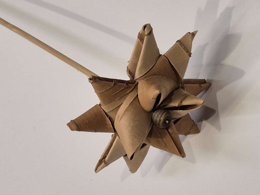 Stjerne av never på stang. Lengde 30 cm. Diameter på stjerne 7 cm